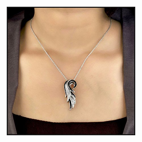 -. Title : Angel Feather Wing White and Black Diamond Pendant Necklace in Sterling Silver (1/5 Carat)