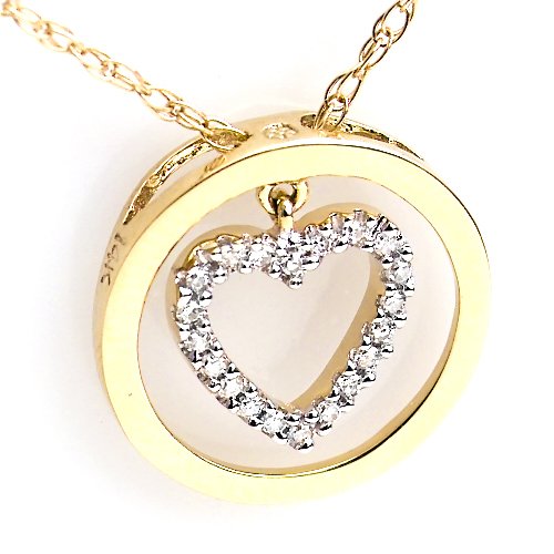 -. Title : 14k Yellow Gold Diamond Heart Pendant
