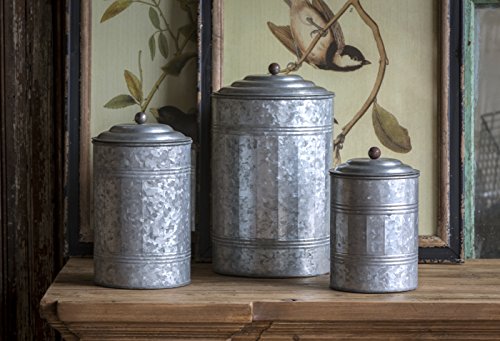 Tall Galvanized Tin Antique Style Canisters Set of 3