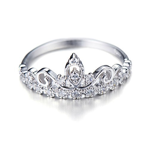 -. Feature : Dainty Rhodium-plated Sterling Silver P.R.Incess Crown Ring / Manufactured by JewelsObsession with the highest quality silver. / Gram Weight: 1.8 / Width: 10 mm / 17 AAA Cubic Zirconia's