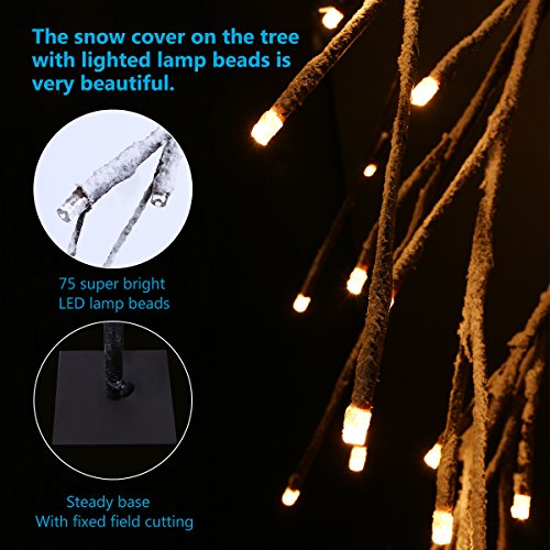 BEAUTIFUL ORNAMENT- This 3ft snow Tree has 75 LED lights, which will beautifully sparkle in your front door, living room, patio, porch, etc. It is also a very special gift for your friends!