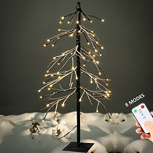 YUNLIGHTS 3ft Snow Dusted Tree 75 LED Lights Snow Tree with Remote Control 8 Modes for Home Garden Party Wedding (Warm White)
