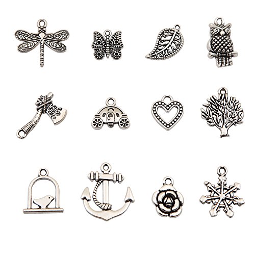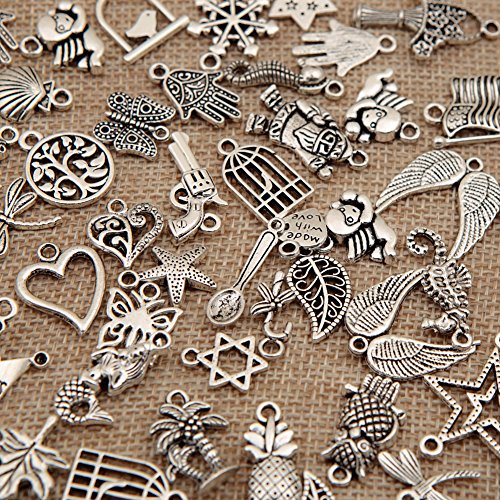 Bingcute 100Pcs Wholesale Bulk Lots Tibetan Silver Plated Mixed Pendants Charms Jewelry