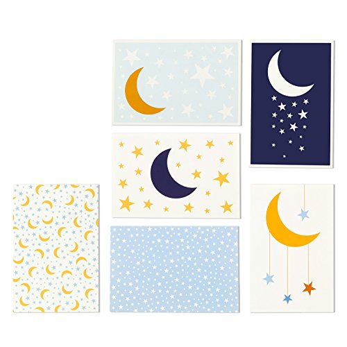 All Occasion Greeting Cards - Starry Night Moon Design - Blank Inside - Blue/Yellow/White - Includes 48 Cards and Envelopes - 4 x 6 inches