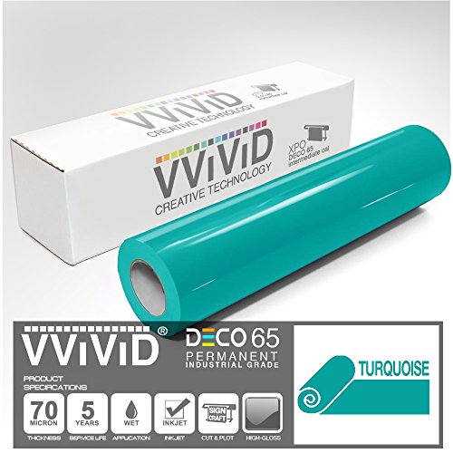 VViViD Turquoise Gloss DECO65 Permanent Adhesive Craft Vinyl for Cricut, Silhouette & Cameo (7ft x 11.8" Roll)