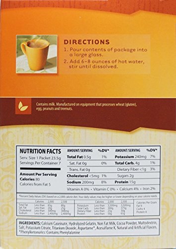 Studio : NutriWise Publisher : NutriWise Binding : Health and Beauty Product Description Very sweet hot chocolate with just a hint of mint flavor. Each Nutriwise Hot Chocolate drink is a smooth and delicious source of 15 grams of high quality protein, low in fat, low in carbohydrates and only 80 calories. Nutriwise hot chocolate drinks are designed for any healthy diet or weight loss plan. 0