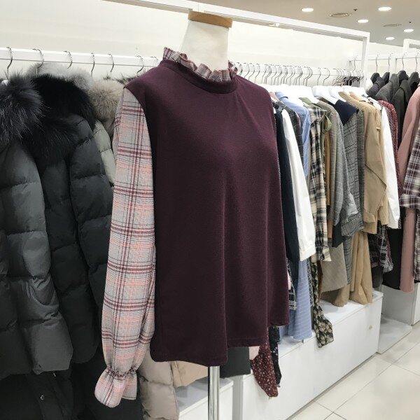 네크 소매 체크배색 티셔츠입니다넥라인 셔링 처리로 여성스러우면서 사랑스럽게 연출된답니다소매 밴딩 처리로 흘러내리지 않는답니다캐주얼하게 연출하셔도 예쁜 블라우스 형 티셔츠랍니다사이즈 FREE가슴둘레 49cm총장 58cm
