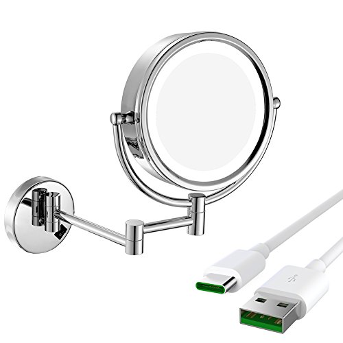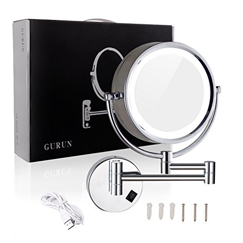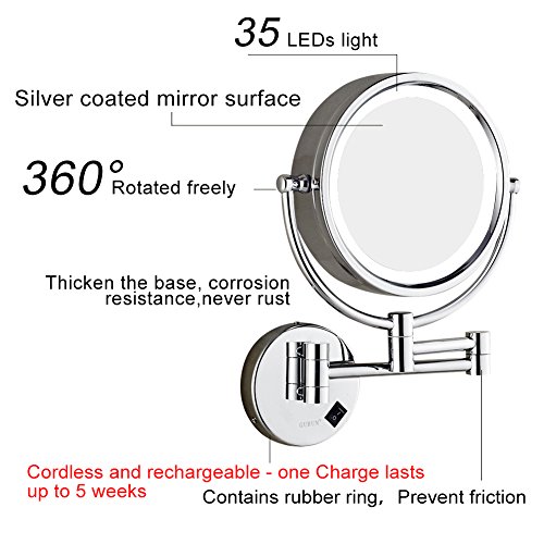 GURUN Wall Mounted Makeup Mirror LED Light Cordless,Rechargeable,Batteries inside,8-Inch Double sided Swivel,with 10x Magnification,Chrome Finish M1809DC(8in,10x)