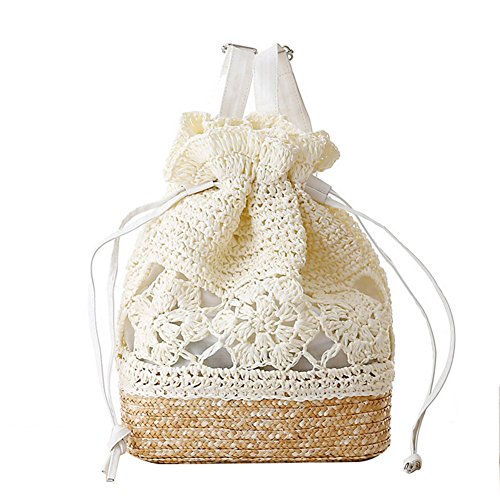 -. Title : Freedi Women Straw Drawstring Backpack Fashion Shoulder Bag Beach Purse Boho Knitted Handbag