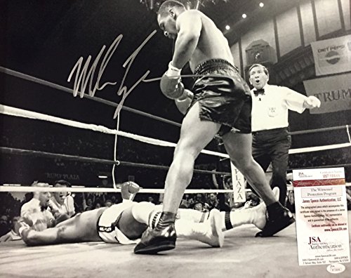 Autographed/Signed Mike Tyson Knockout Knockdown B&W Boxing 16x20 Photo JSA COA