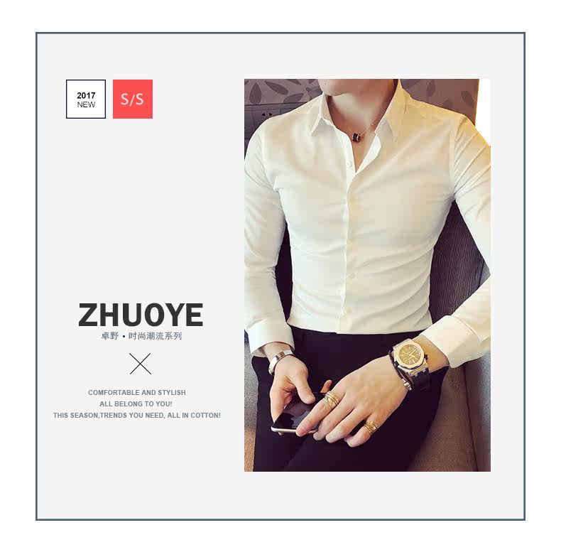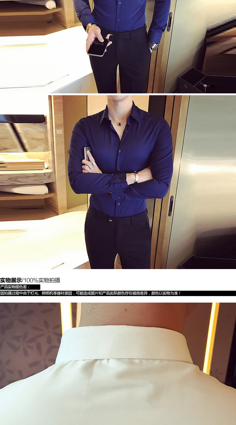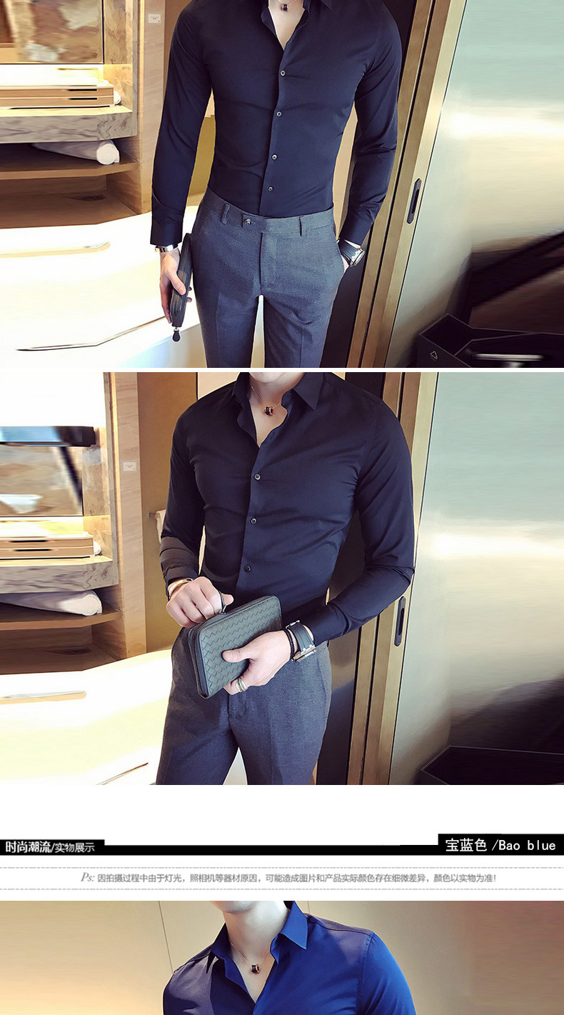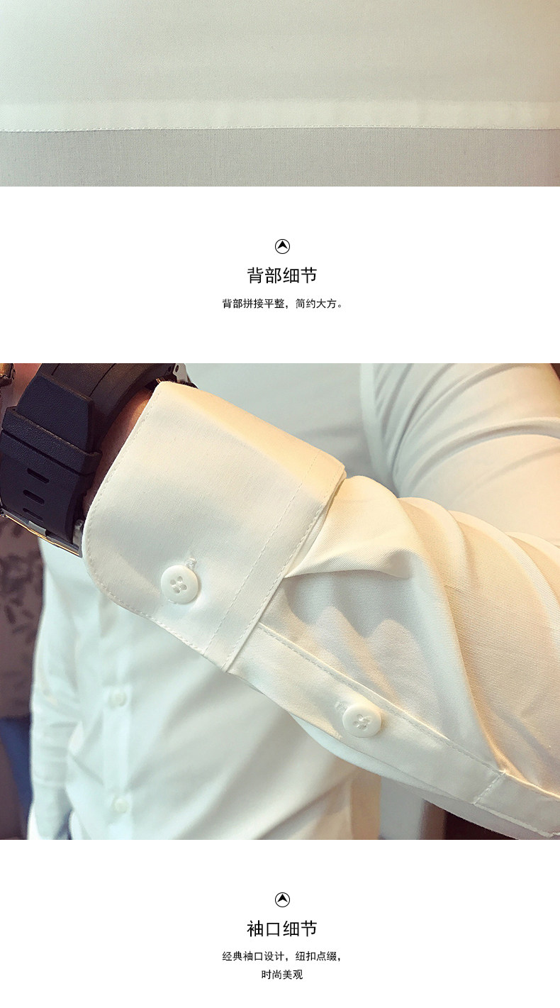 春秋青年修身款白色发型师衬衫韩版男士英伦长袖衬衣潮流简约男装