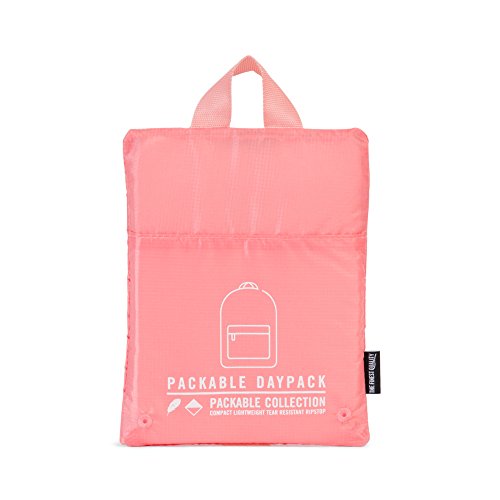 The lightweight ripstop Packable Daypack features adjustable webbing straps and collapses into its own internal pocket for easy storage.