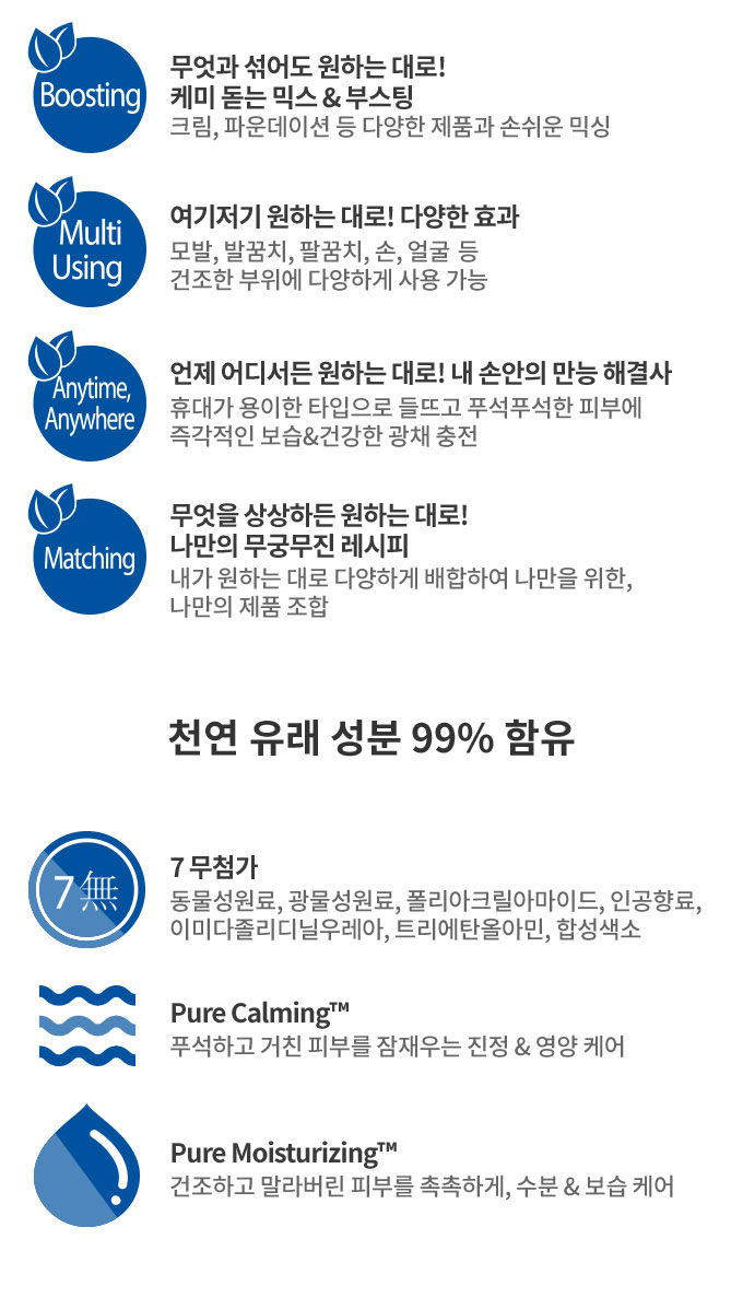 乾燥しやすい部位に多様に使用できるアンプル オイル テクスチャーが即刻的な保湿効果を具現します。