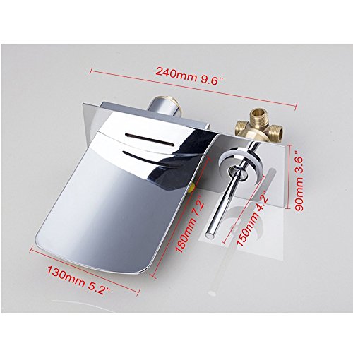 -. Feature : Spout Length: 180 mm ( 7.2" ) Spout Width:240 mm ( 9.5 " ),Spout Height: 90 mm ( 3.6 " ) / Finish:Oil Rubbed Bronze,Waterfall / Includes water hoses with 3/8" female compression connector, U.S. standard size. / Ceramic valves which is tested for up to 600,000 life cycles at 90 degrees. / Easy to install,hardware