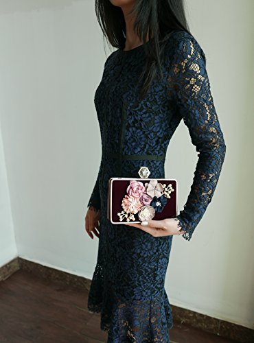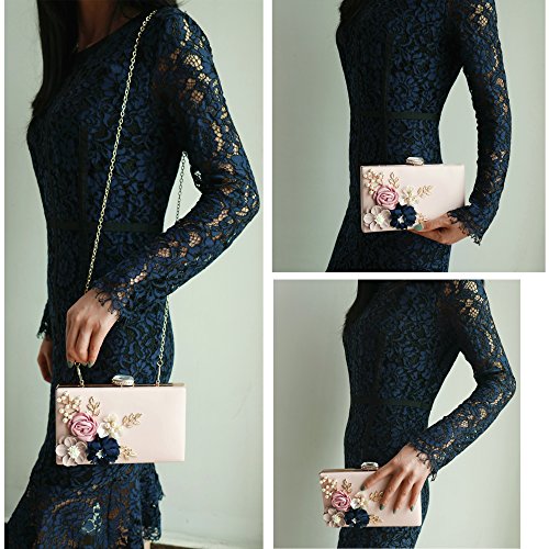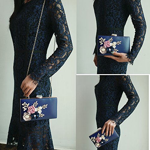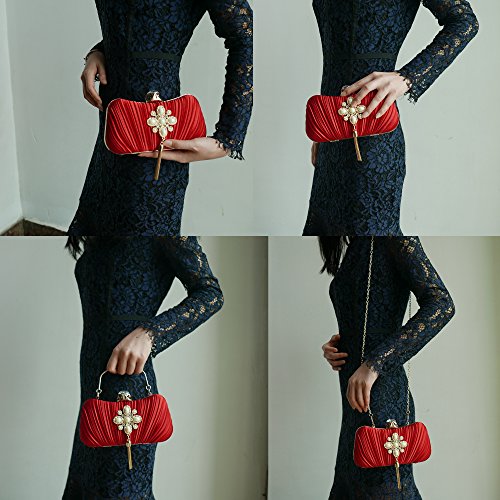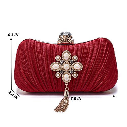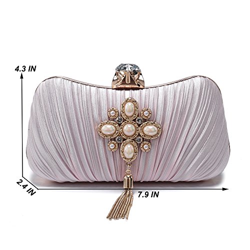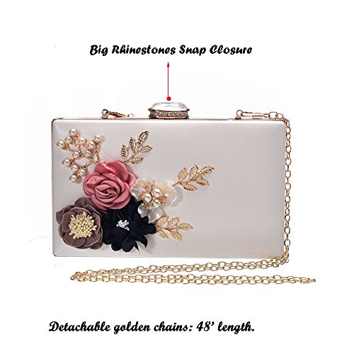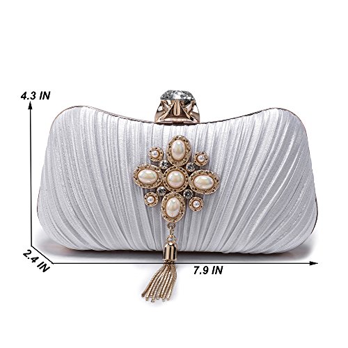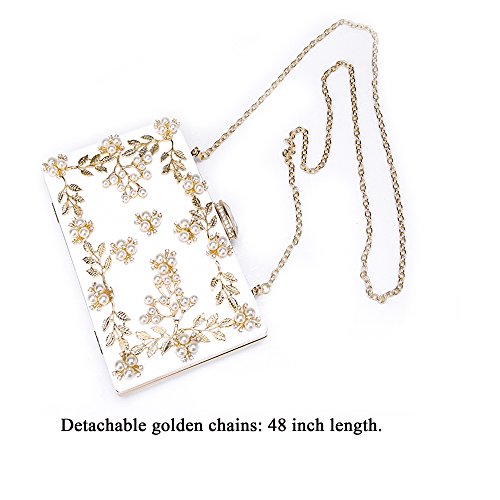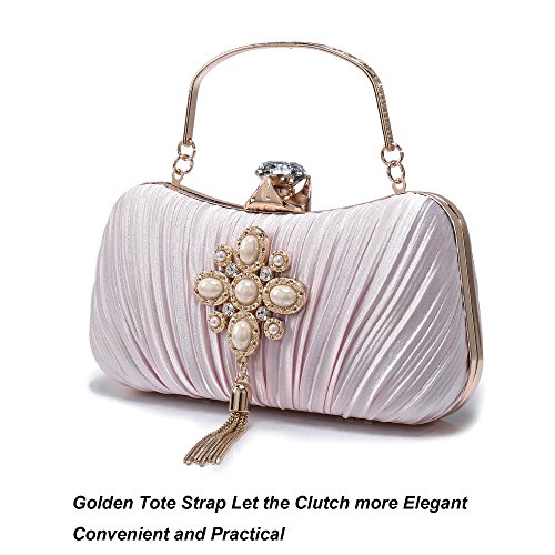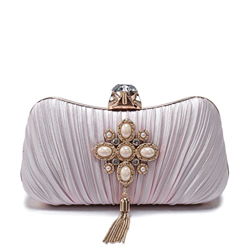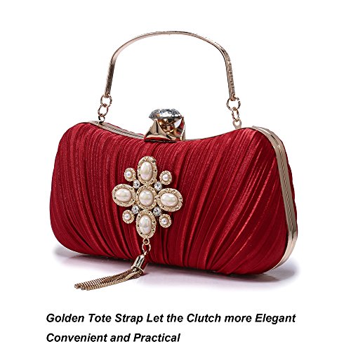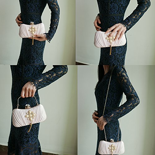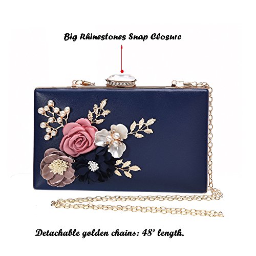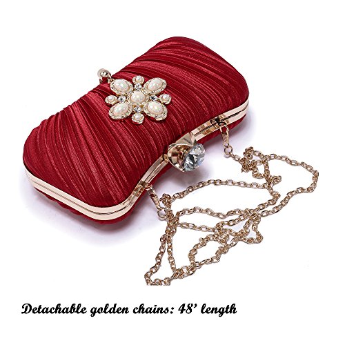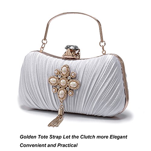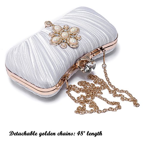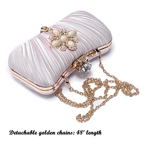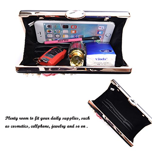 Product Description The glamorous evening party clutch features allover sparkling crystals on the front of this chic shaped clutch and has metal frame construction with clasp on the top. It features magnetic hasp closure and detachable chain which offers versatile carrying options as handbag, clutch, a shoulder bag or a cross-body bag. The crystal handbag is so royal, noble and brilliant that it will be a perfect status symbol and a bold gift for femininity.