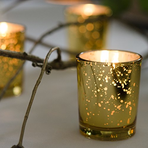 Yummi Set of 36 10 hour Votive Candles & Metallic Holders, Gold Metallic