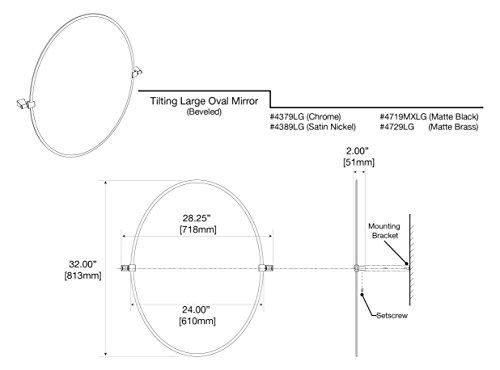 Gatco 4719MXLG Bleu Large Oval Mirror, Matte Black