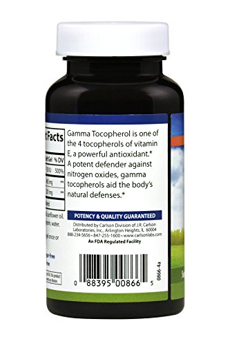 Carlson Gamma E-Gems 465 mg, Gamma Tocopherols, Antioxidant, Cardiovascular Health, 60 Soft Gels