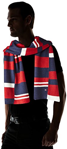 Tommy Hilfiger Men's Piece Color Blocked Stripe Scarf, red, OS