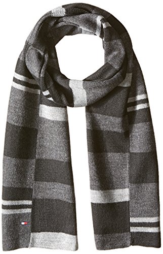 Tommy Hilfiger Men's Piece Color Blocked Stripe Scarf, charcoal, OS