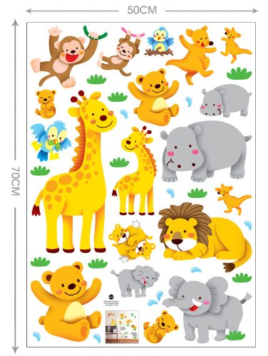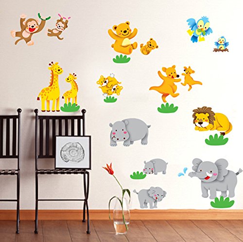 -. Title : UfingoDecor Happy Zoo Lovely Animals Monkeys Bears Hippos Lions Kangaroos and Elephants Wall Decals, Children's Room Nursery Removable Wall Stickers Murals