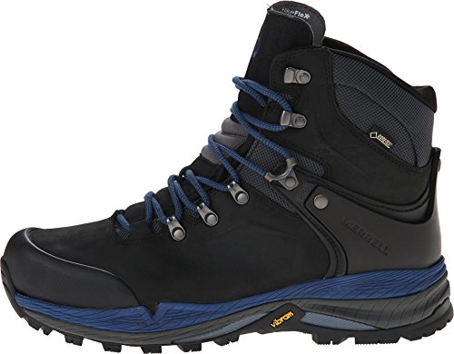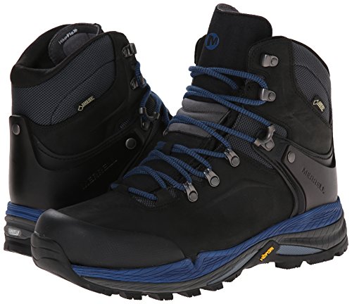Studio : Merrell Footwear Publisher : Merrell Footwear Binding : Apparel Product Description When you're loaded down for days in the backcountry, this 01529 Merrell Men's Crestbound Gore-Tex Hiking Boots lets you hit the trail and never look back. It's steadfast, waterproof breathable upper keeps feet dry and cradles your heel with a snug fit, preventing trip-killing blisters. Underfoot, the lightweight, durable hiking platform lets you feel the trail while protecting by absorbing rough terrain. Full Grain Leather Metal Hook And Lacing Eyelet For Secure Lacing Articulated Tongue Flexes For Forward Movement GORE-TEX™ Waterproof Membrane Repels Moisture And Enhances Breathability External Instep And Heel Stability Arm Dual Density EVA Anatomical Footbed Treated with M-Select™ FRESH Shoe Odor Control Molded Nylon Arch Shank UniFly™ Midsole Connects You To The Trail, Protects You From The Terrain Grade 6 Nylon Insole For Backpacking With A Medium Pack TrailProtect™ Pad Offers Additional Protection Off Road 5mm Lug Depth Vibram™ Outsole Weight: 3lb 3oz 01529 Merrell Men's Crestbound Gore-Tex Hiking Boots - Black/Blue 0