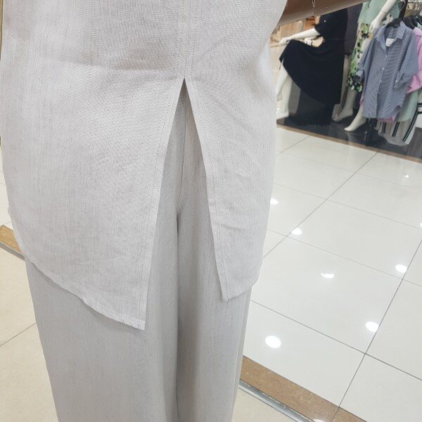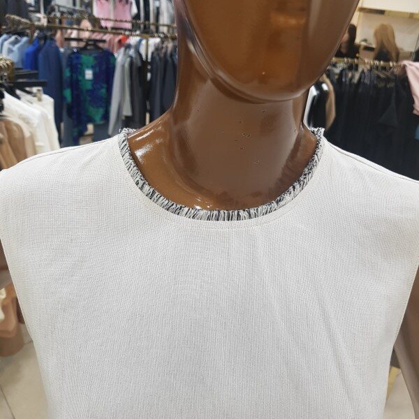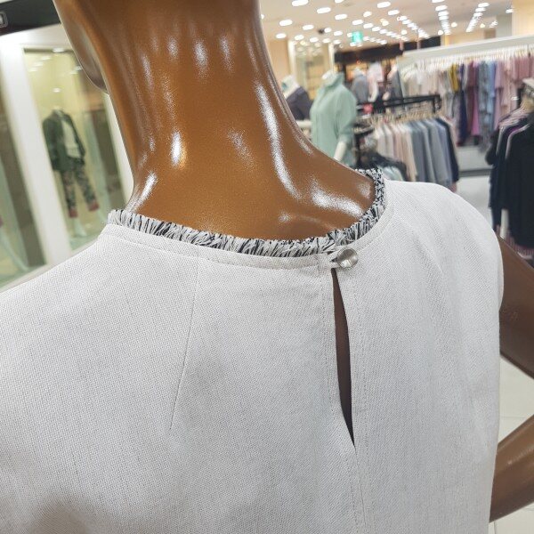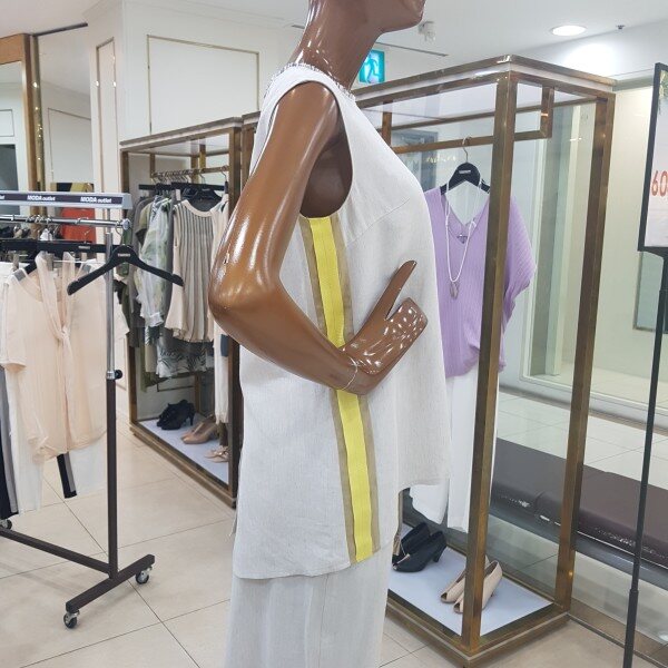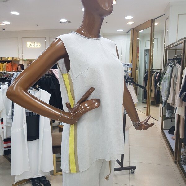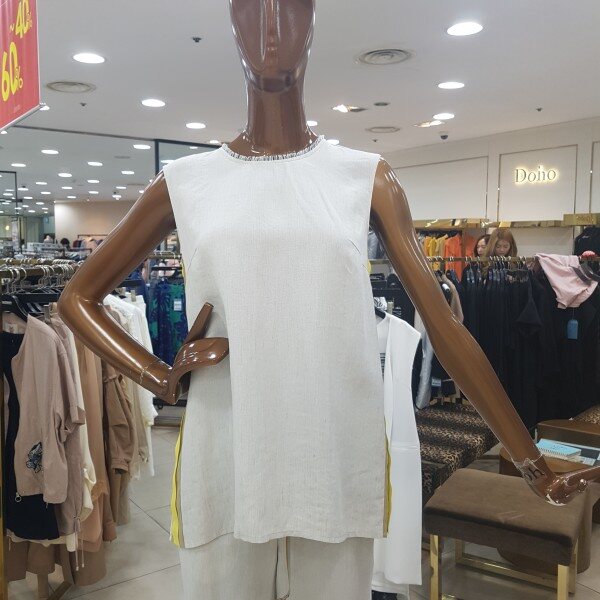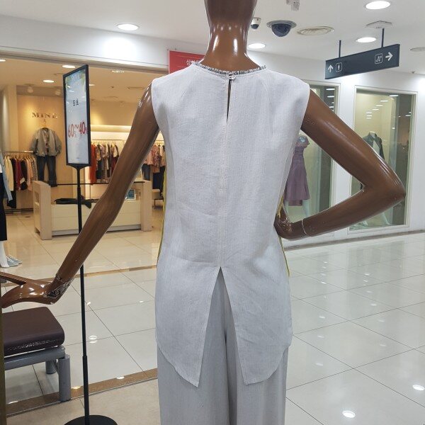 뒷트임이 포인트인 민소매 블라우스 디자인입니다.