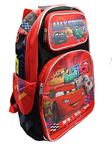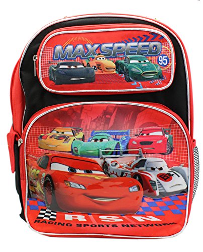 I am speed! ; Cars racing backpack; Features Lightning McQueen on the front; Officially licensed product; Includes three compartments in descending size; Measures 16in (40.5cm) tall and 12in (30.5cm) wideFeature