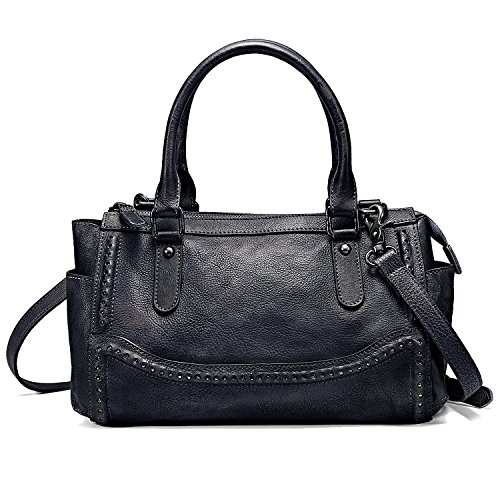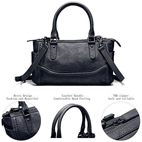 NiceEbag Women Satchel Top-handle Bag Vintage Shoulder Bag Ladies Genuine Leather Tote Purse YKK Zipper