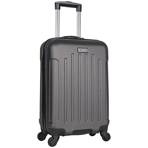 Studio : Heritage Publisher : Heritage Binding : Apparel Product Description 20 inch ABS 4-wheeled upright/true carry-on. Lightweight construction. 4-wheel rollers allow smooth 360 degree rotation. Durable ABS exterior provides optimum impact resistance. Tear resistant, fully lined interior. Meets most airline carry-on size requirements. Roomy interior features garment restraints and zipper pocket. Lid includes a large U-shaped zipper pocket for double sided packing. Bottom grab handle and flexible top and side handles allows for easy lifting. Locking retractable handle system provides superlative mobility. Overall size: 22.0 inch H x 14.0 inch W x 9.0 inch D weight: 6.4 lbs 0