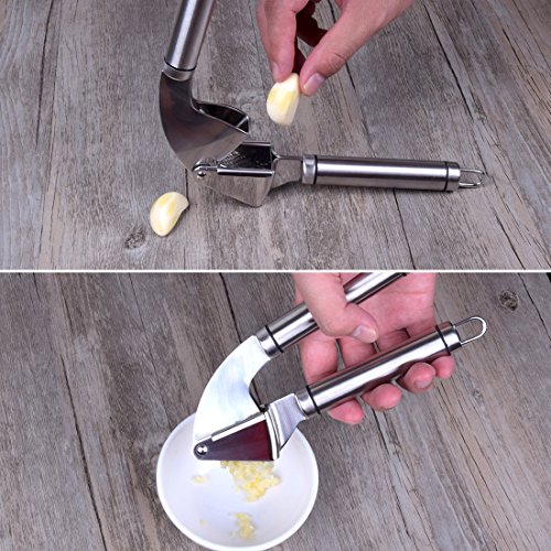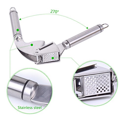【18/10 STAINLESS STEEL GARLIC PRESS .】Easy to clean hand presser won't rust, bend, break or weaken at the joint even after frequent use.