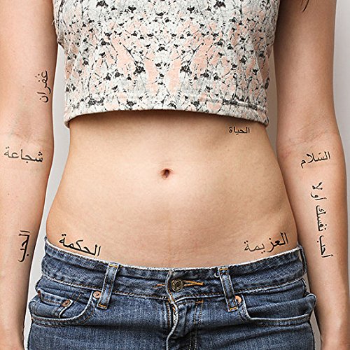 Tattify Arabic Word Temporary Tattoos - Talk like an Egyptian (Complete Set of 16 Tattoos - 2 of each Style ) - Individual Styles Available Temporary Tattoos