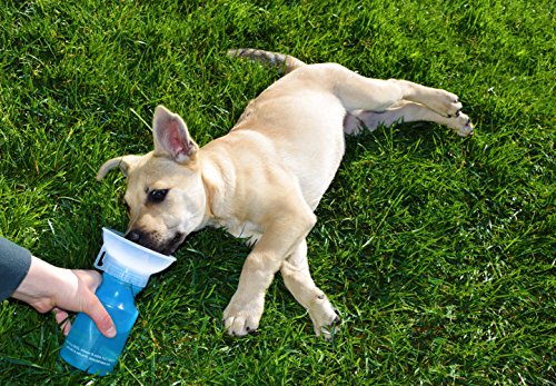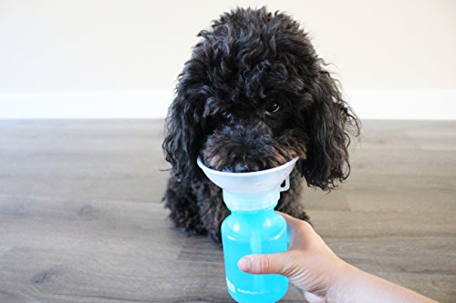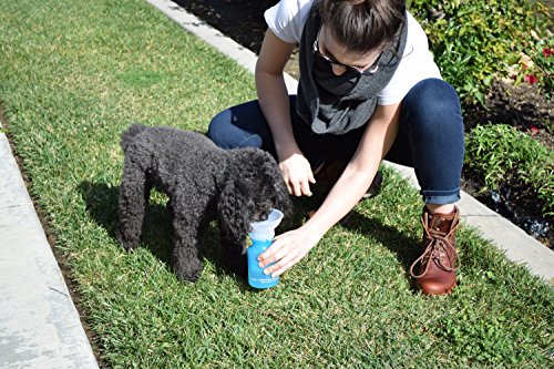 The Auto Pup Cup is an easy one handed water bottle for your dog. Just squeeze the bottle and water will fill the bowl, once you release your squeeze, whatever water is left in the bowl will drain back into the bottle. Holds 14oz of fresh water for your dog.
