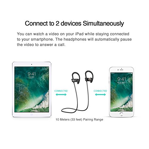 【Connect To 2 Devices Simultaneously】You can even connect the headphones to two devices simultaneously. For example, you can watch a video on your iPad while staying connected to your smartphone. The headphones will automatically pause the video to answer a call.