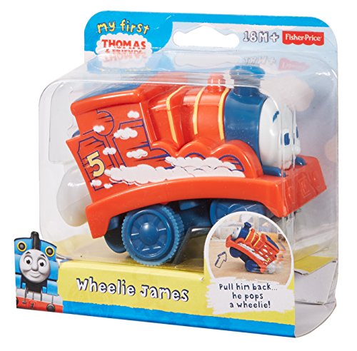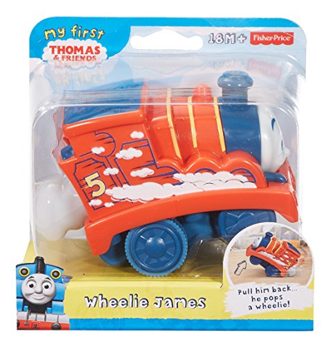 -. Binding : Toy -. Brand : Fisher-P.R.Ice -. EAN : 0887961361674 -. Feature : Pull James back, then release him to watch him race forward / As he rolls, he pops a wheelie and a steam Cloud puffs out behind him / Specially designed with an even sweeter face / Perfect introduction to the Thomas & friends world, or great addition to your child's collection of toy trains -. Label : Fisher P.R.Ice -. Manufacturer : Fisher P.R.Ice -. Model : DTP09 -. MPN : DTP09 -. PackageQuantity : 1 -. PartNumber : DTP09 -. ProductGroup : Toy -. ProductTypeName : TOYS_AND_GAMES -. Publisher : Fisher P.R.Ice -. Studio : Fisher P.R.Ice -. Title : Fisher-P.R.Ice My First Thomas the Train Wheelie James Toy -. UPC : 887961361674 -. Warranty : No Warranty
