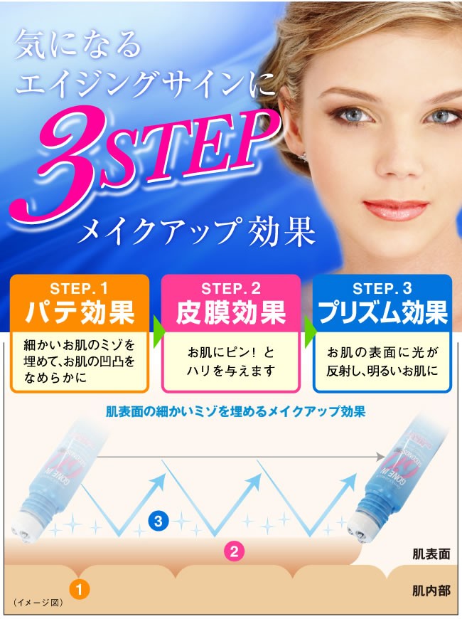 | 使用方法 | 本体を押して液を適量出し、乾いたお肌に転がして塗布してください。その後トントンと指でたたくようになじませてください。 |