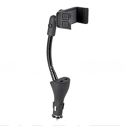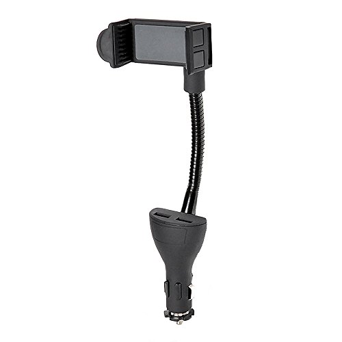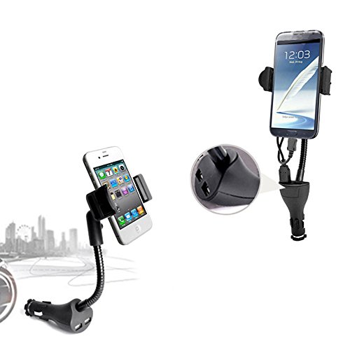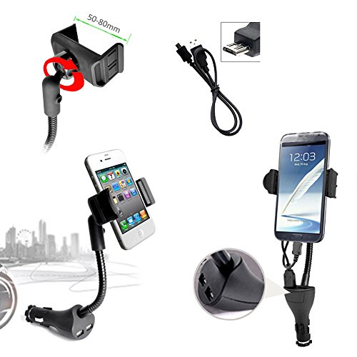 UOKOO Car Phone Mount, Car Phone Holder Dual USB 2.1A Charger with Flexible Gooseneck and Adjustable Non-slip Cradle for iPhone Samsung Android Smartphones Car Phone Holder