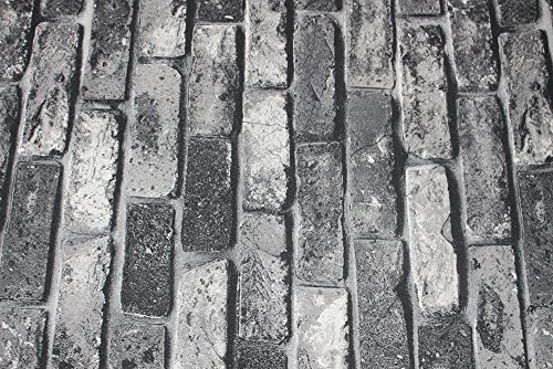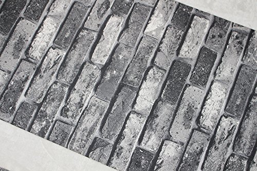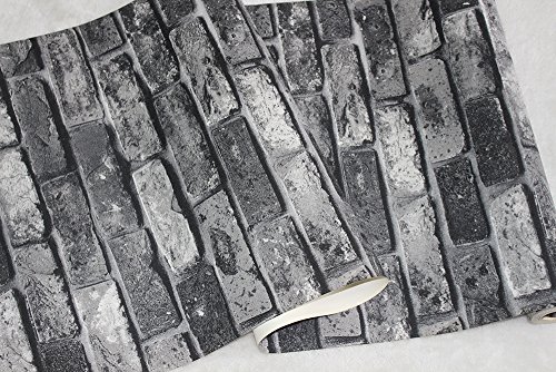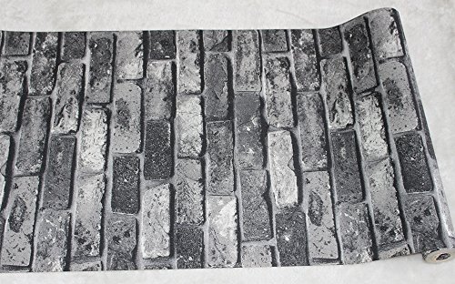 HaokHome 69092 PVC Vinyl Retro Vintage Faux Brick Wallpaper Black for Home Bar Wall Decoration Wall Paper 20.8" x 393.7"