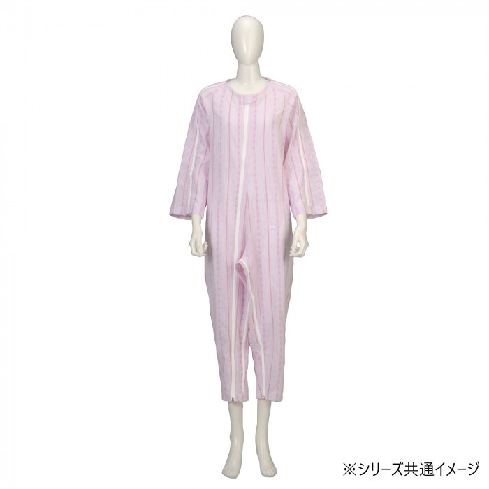 寝たきりの方の介護がしやすいよう、素材と機能にこだわって開発された介護寝巻です。胸元から足までフルオープン式のファスナーと、点滴などの医療行為や寝たきり、片マヒの方の着替えや清拭が楽に行える腕ファスナーがついています。おむつ交換に便利な股ファスナーもついています。 |