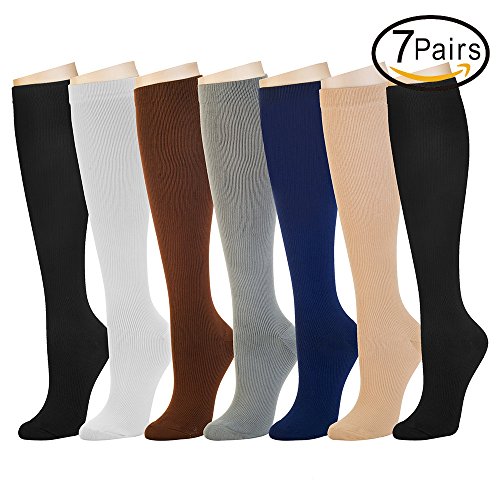 7 Pairs Compression Socks For Women and Men -- Best Medical, Nursing, Athletic, Edema, Diabetic,Varicose Veins,Maternity,Travel,Flight Socks ,Shin Splints -...