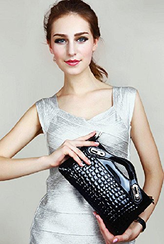 Concierge Bag Woman Crocodile Pattern 100% Cow Leather Top-Handles Bag Evening Purse