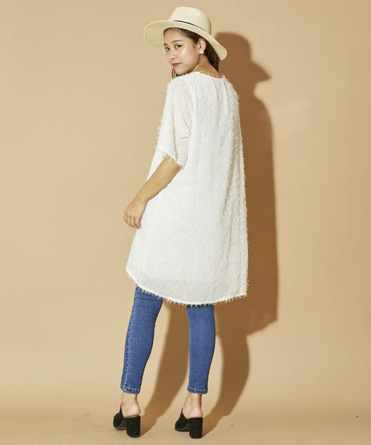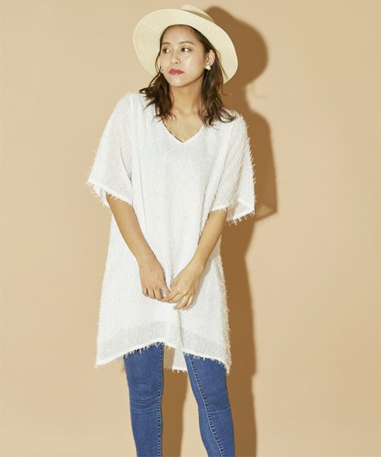 丈は短めなので足を出すのに抵抗がある場合は下にスキニーを合わるのもオススメ!