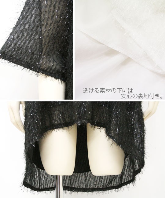 光沢のある糸が混ざっていてキラキラ輝くワンピースです。