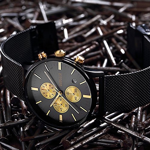 -. Binding : Watch -. Brand : BAOGELA -. Department : Mens -. EAN : 0602668585778 -. Feature : Chronograph Functions with Minute and Second Timer / 42 mm Brass Case with Mineral Dial Window / Quartz Movement With Analog Display / Stainless-steel Band And Hook Buckle / Water resistant to 30 m (99 ft): In general, withstands splashes or brief immersion in water, but not suitable for swimming -. Label : BAOGELA -. Manufacturer : BAOGELA -. MPN : BG-1611-BLACKGOLD -. PartNumber : BG-1611-BLACKGOLD -. ProductGroup : Watch -. ProductTypeName : WATCH -. Publisher : BAOGELA -. Studio : BAOGELA -. Title : Men Quartz Watch 1611 Stainless Steel Calender Alloy Business Formal Wrist Watch for Man Black Gold -. UPC : 602668585778