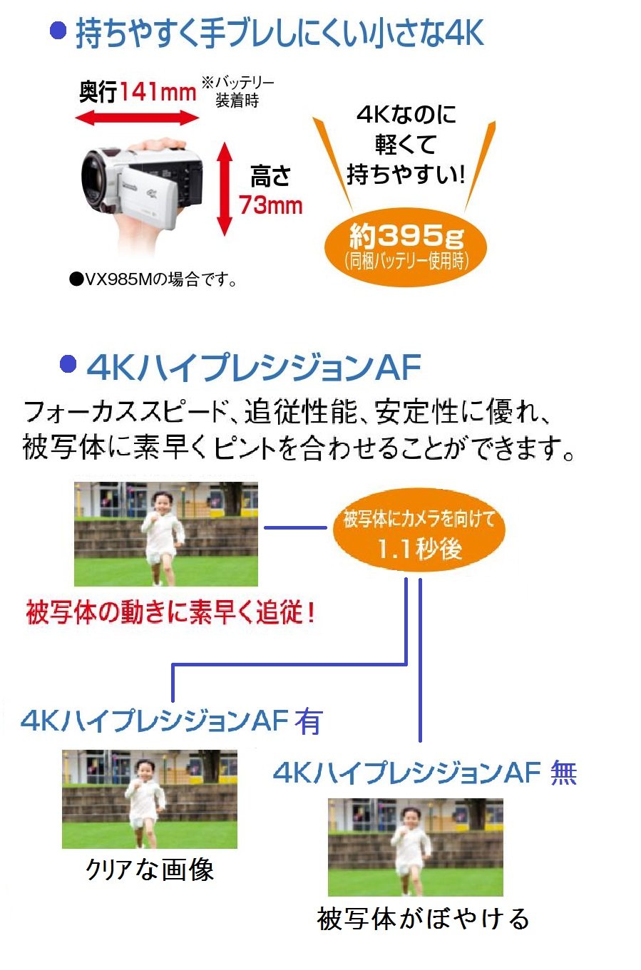 It is the first 4K digital video camera that will not be reviewed yet because there are not many opportunities to use. I tried to make it to Sony (because the camera shake correction was written with Sony in other reviews) I was worried but I am looking forward to saying the price and the first Panasonic brand (until now I have only used Sony's video camera) is. I bought a battery accessory kit so that it does not have an hour with the attached battery.