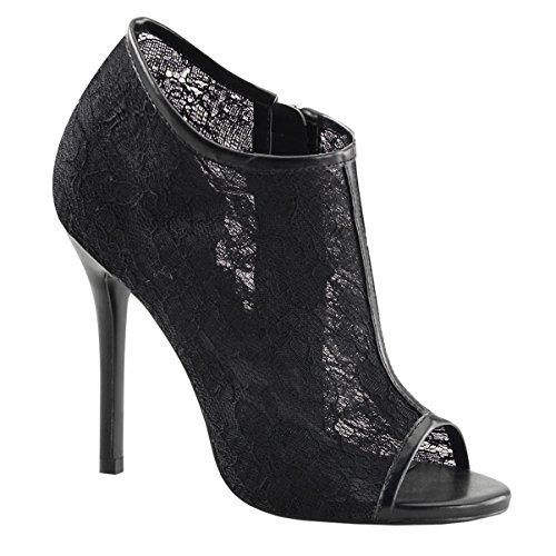 Womens Lace High Heels Black Booties Floral Shoes Open Toe Boots 5 Inch Heels