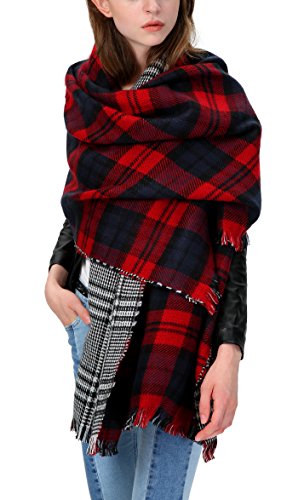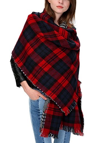 (Urban CoCo)/Accessories/Scarves/DIRECT FROM USA/Urban CoCo Women's Tartan Plaid Blanket Scarf Winter Checked Wrap Shawl (Series 1 red)