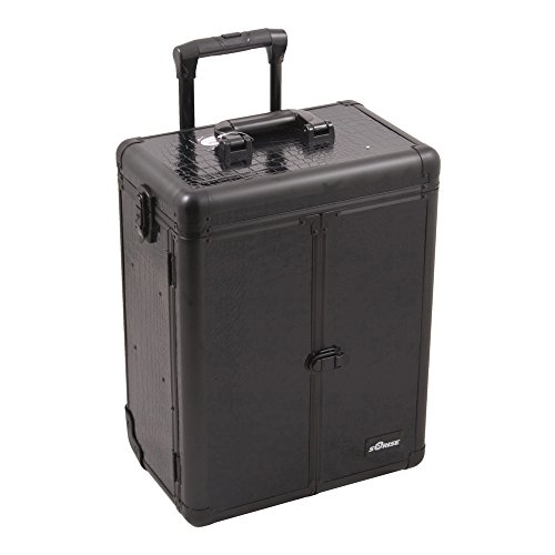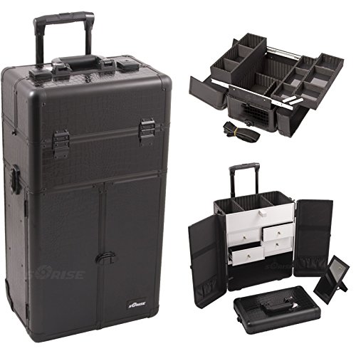 (SunRise)/Face/Foundation/DIRECT FROM USA/Black Crocodile Printing Texture Professional Rolling Aluminum Cosmetic Makeup Case with Split ...