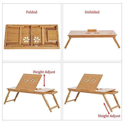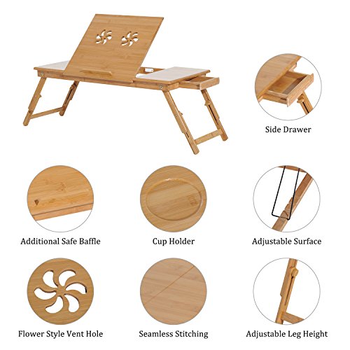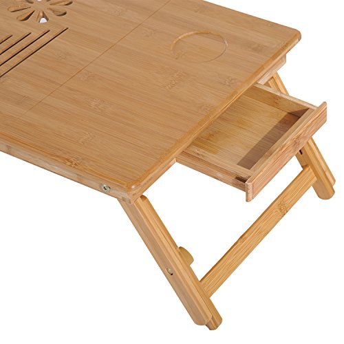 -. Binding : Office Product -. Brand : HOMCOM -. Feature : Multipurpose lap tray with tilting surface and height adjustable legs for meals, reading, work or leisure / Foldable legs create a compact, space saving storage solution / Sturdy and durable yet lightweight 100% natural bamboo material suitable for any surface / Handy pull-out drawer for storing items out of sight when not in use / Detailed surface design acts as ventilation holes for when using the product as a laptop stand -. Label : HomCom -. Manufacturer : HomCom -. PackageQuantity : 1 -. ProductGroup : Office Product -. ProductTypeName : OFFICE_PRODUCTS -. Publisher : HomCom -. Studio : HomCom -. Title : HomCom Bamboo Laptop Tray with Drawer