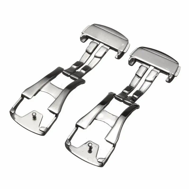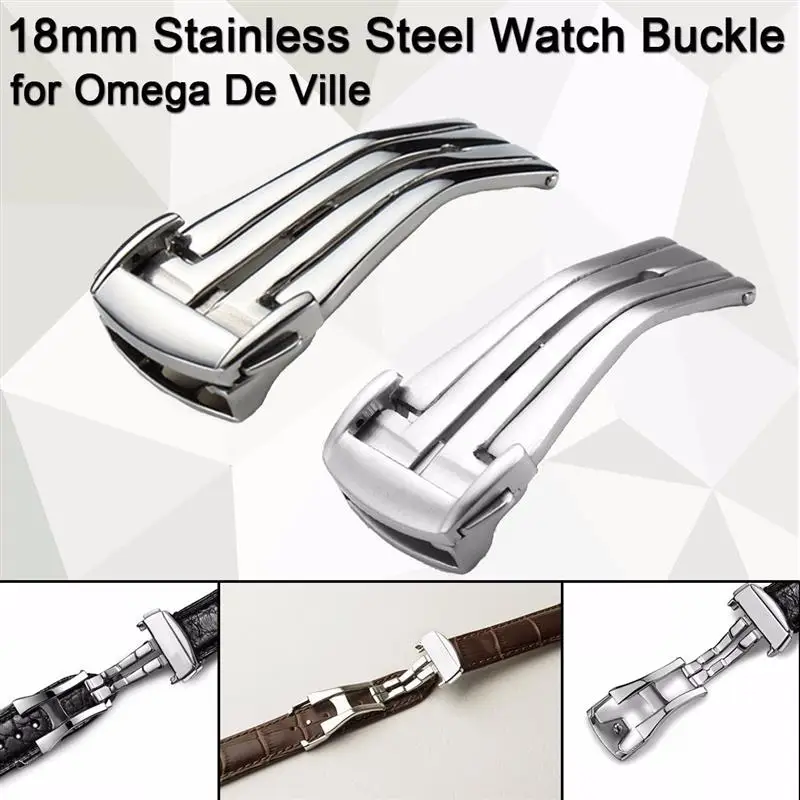 | [해외] 스테인레스 스틸 배포 걸쇠 실버 18 미리메터 손목 가죽 스트랩 접이식 버클 butterfly 버클 omega 액세서리 |